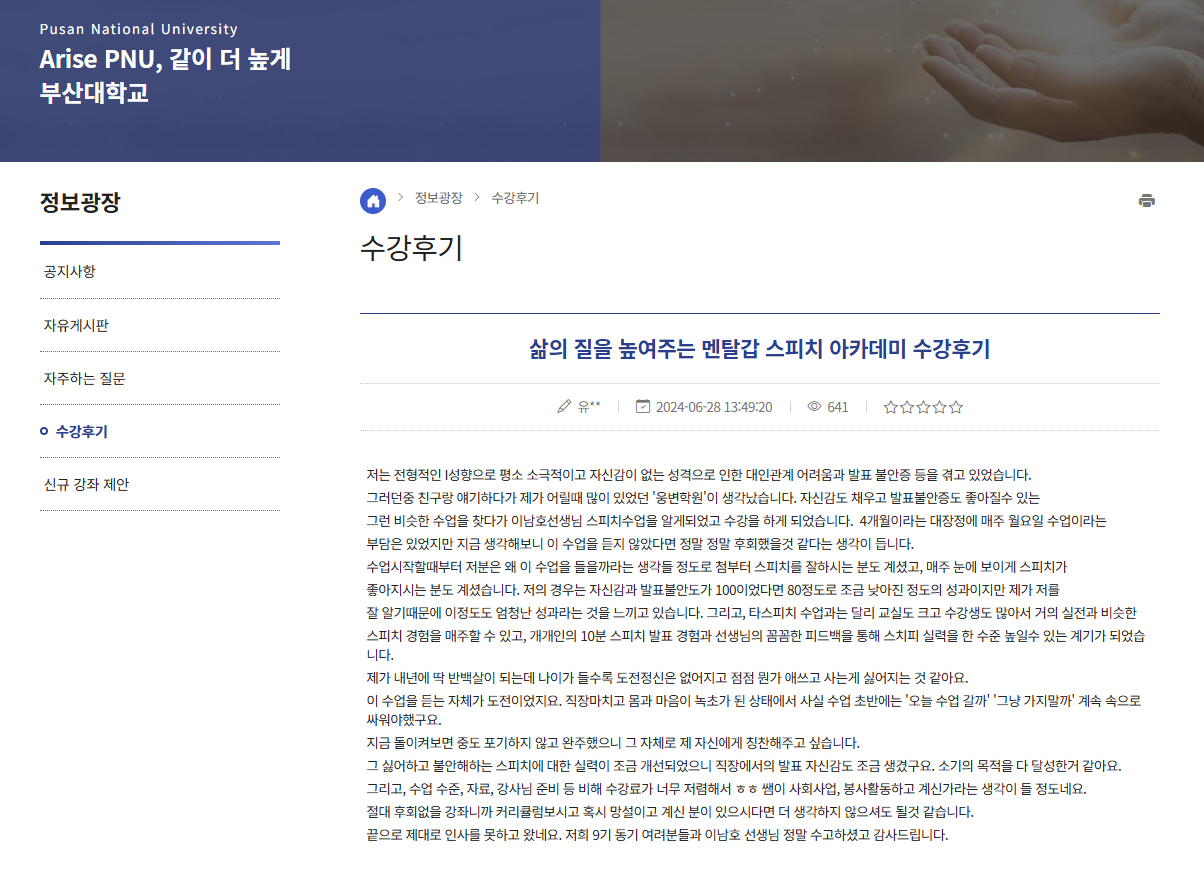 삶의 질을 높여주는 멘탈갑 스피치 아카데미 수강후기